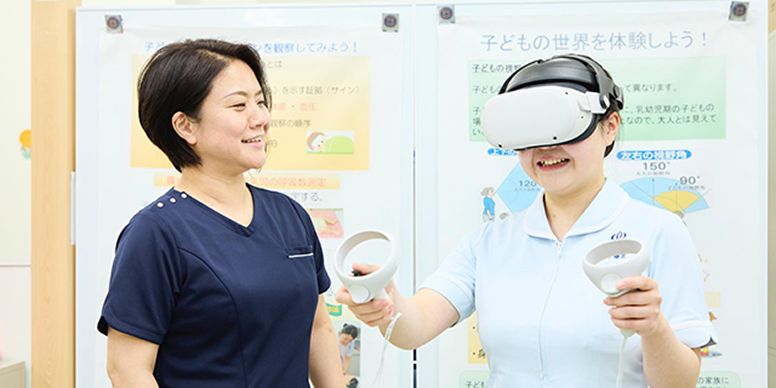 しかし小児看護学の演習においては既存の手法では困難な場面があり、その改善策としてビジネスエンジニアリングのVR学習システム「VR-learning」を活用している。